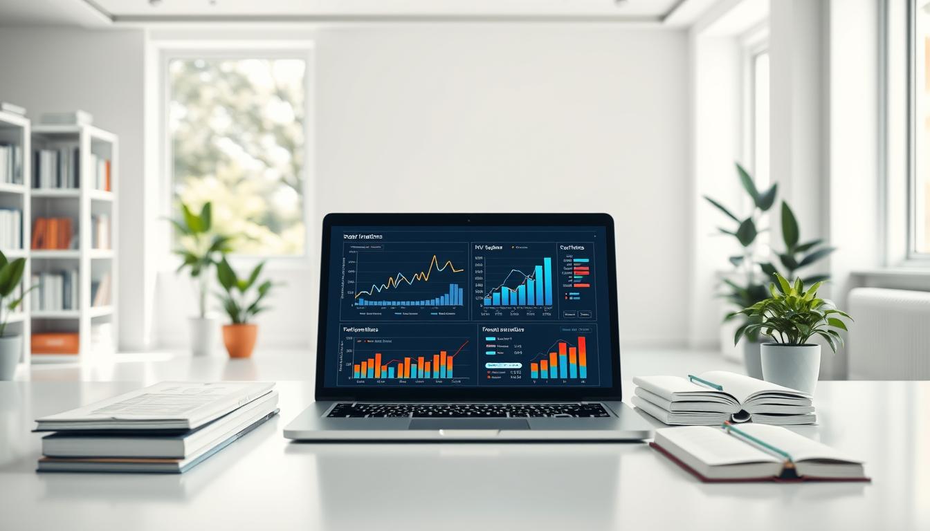 A sophisticated data analysis laboratory, bathed in warm, natural lighting that filters through large windows. In the foreground, a sleek, minimalist desk displays an open laptop, a stack of statistical journals, and a mug of steaming coffee. On the middle plane, a large whiteboard displays complex mathematical equations and visualizations, guiding the viewer through the intricacies of data analysis. In the background, rows of bookshelves and display screens showcase the latest analytical tools and software, creating an atmosphere of academic rigor and technological prowess. The overall scene conveys a sense of focus, productivity, and the pursuit of data-driven insights.
